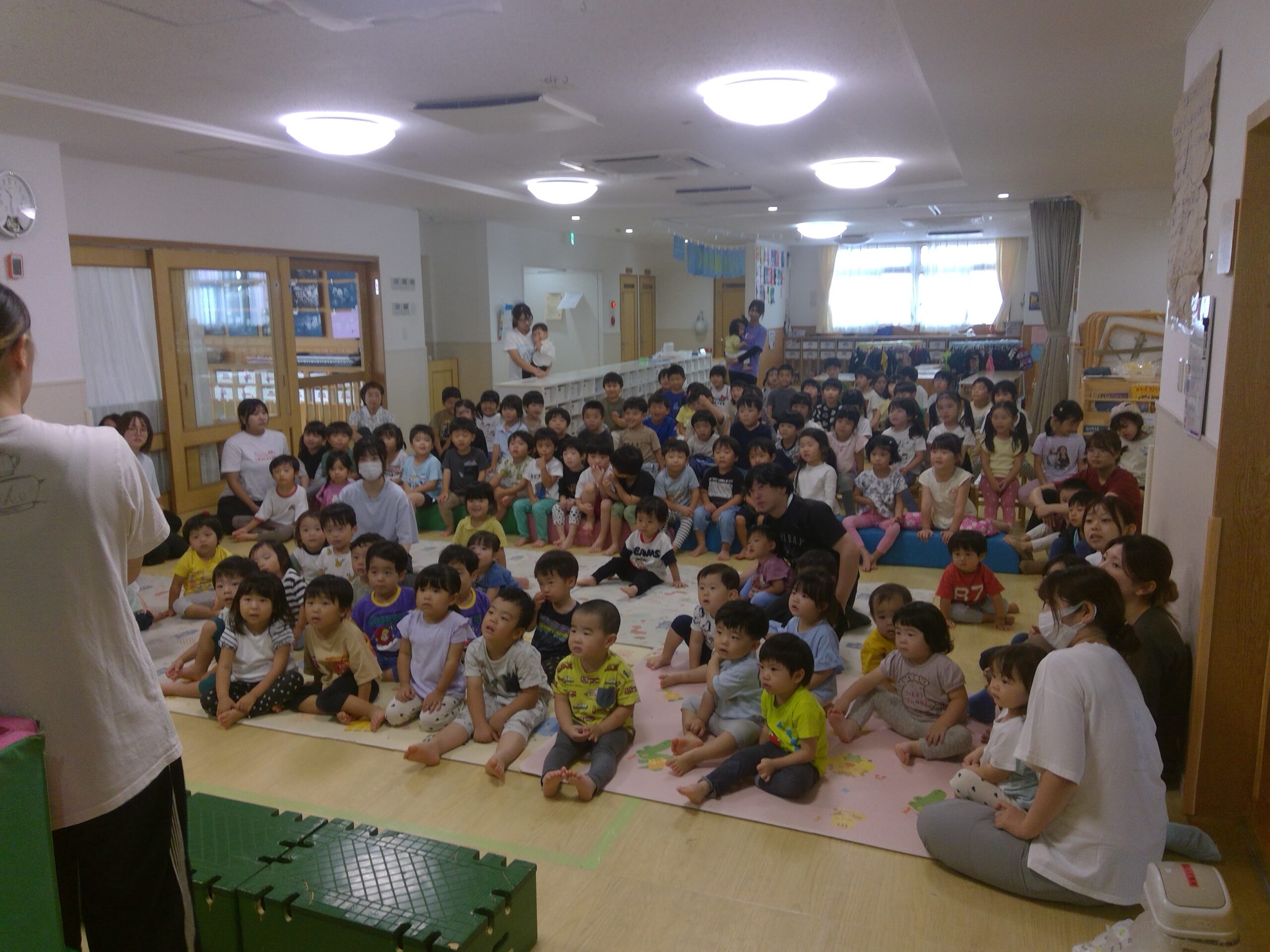 「くいしんぼうのおばけの子」の歌にあわせて、次に出てくる食べ物を予想しながら楽しみましたよ。