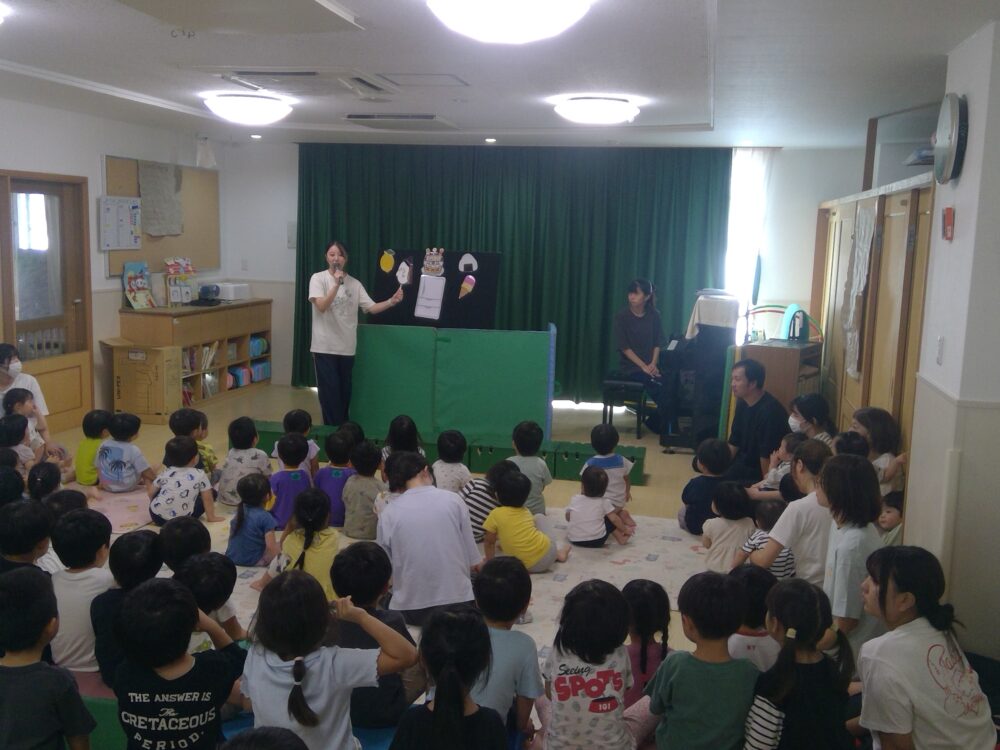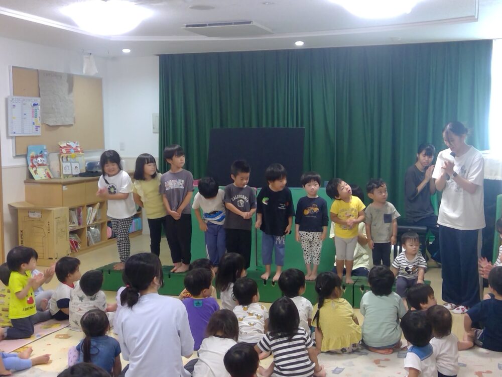 「くいしんぼうのおばけの子」の歌にあわせて、次に出てくる食べ物を予想しながら楽しみましたよ。