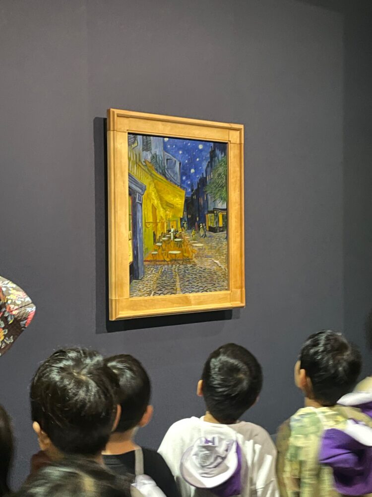 事前にゴッホの作品の写真をいくつか見ていたので「これ前見た作品だね!」や「○○が書いてるよ!」と小声で話しながら見ていました。