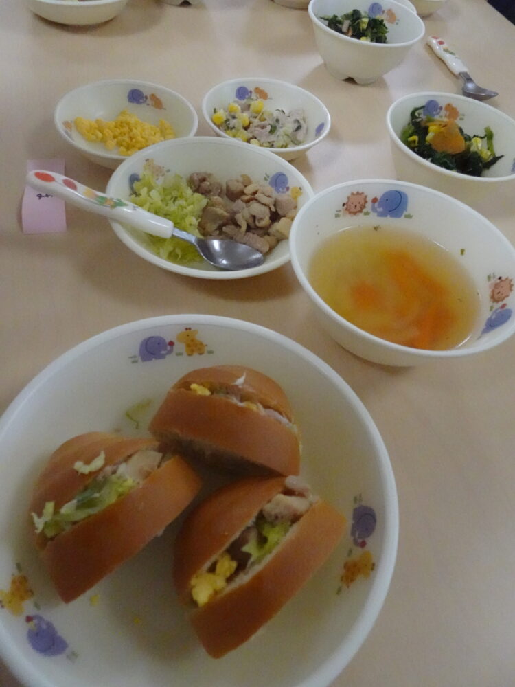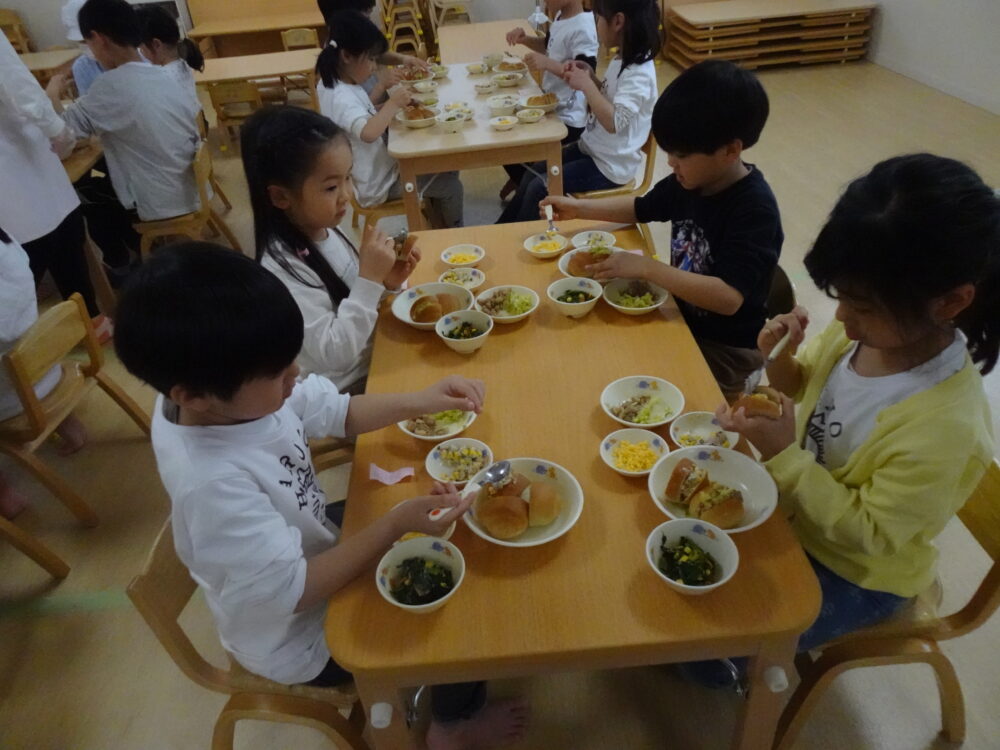 ホームカミングデーがありました。去年の卒園生と5歳児ライオン組が一緒に制作をしたりクッキングをしたりして交流しました。