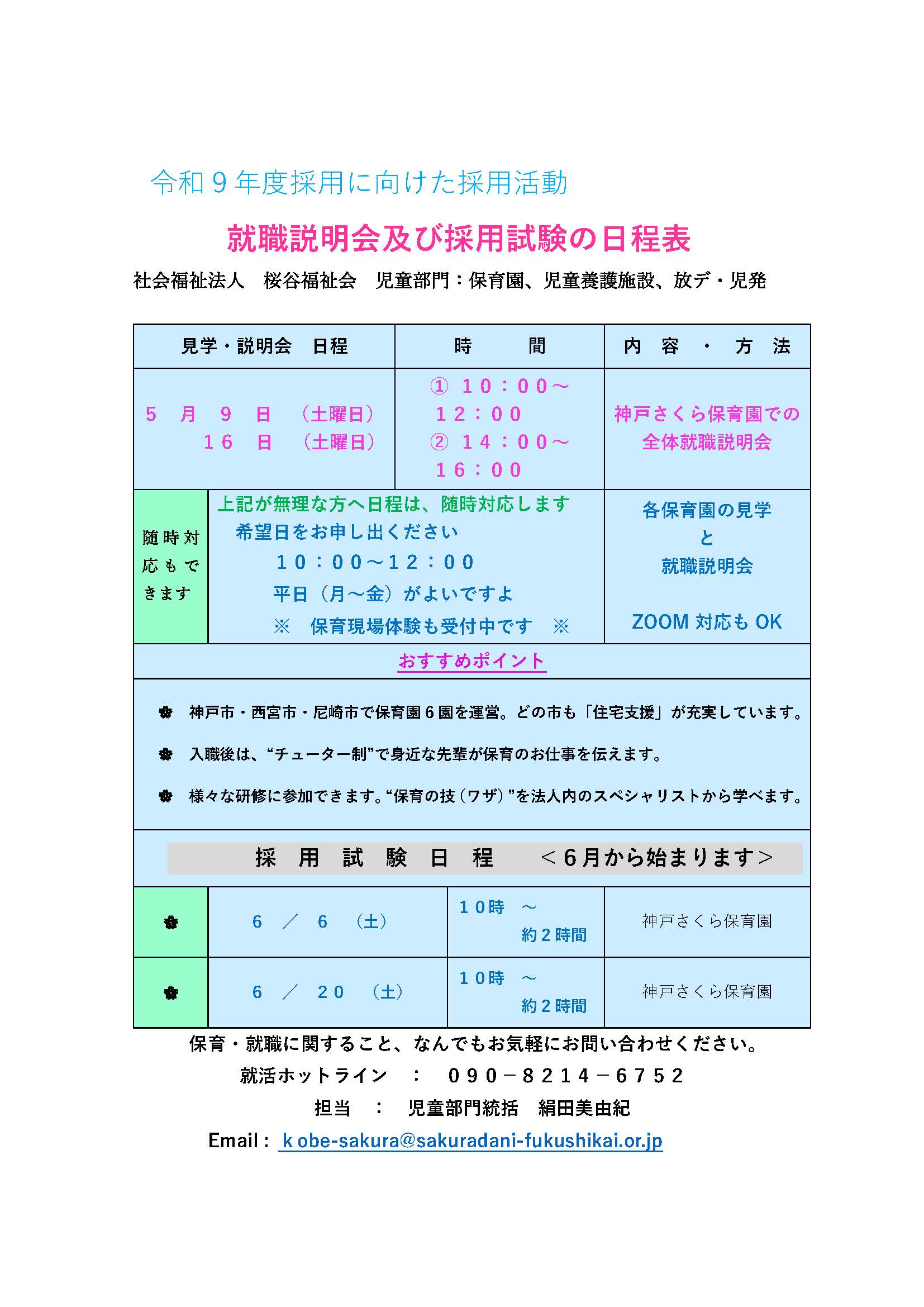 - 令和9年度採用に向けた採用活動 就職説明会及び採用試験の日程表